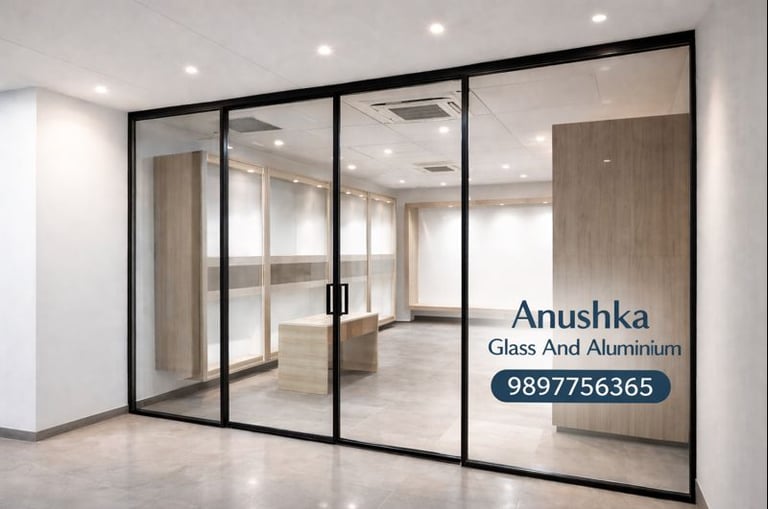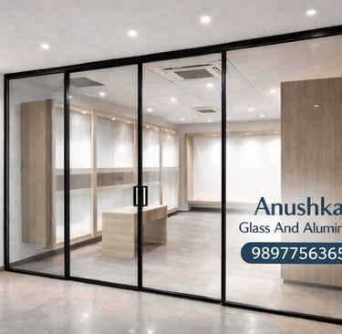 Anushka Glass And Aluminium: Top-rated shop for Soundproof UPVC Windows, Slim Profile Glass Partitions, and Domalka Aluminium Fabrication in Firozabad. Visit us at Makkhanpur Chauraha (NH 19) for premium interior glass work and energy-efficient window solutions. 15+ years of trusted expertise.